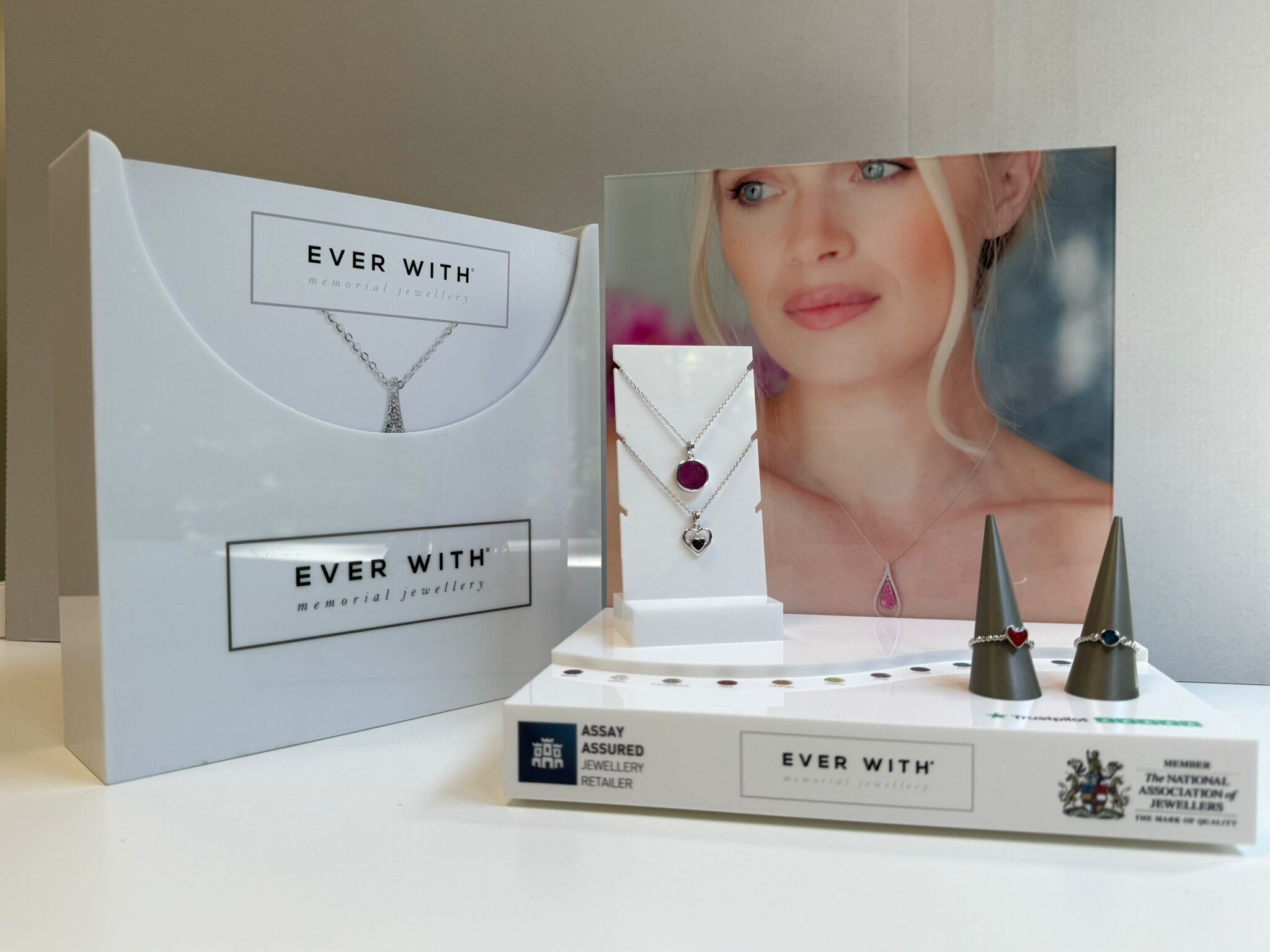 Our beautiful EverWith display stands feature a selection of our most popular Sterling Silver jewellery in various colours.